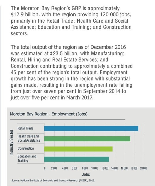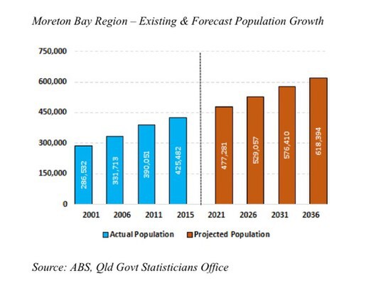 In breaking down the key forecasted economic data for the region over the next 5 to 15 years, and given the forecasted population growth from the current 438,000 to a forecasted 600,000 by 2031, this will deliver great opportunities for SMEs and the community in general. That is around 100,000 more people in the next ten years and around 160,000 more people in next 15 years, that will need housing and general infrastructure needs to live in the great Moreton Bay community.