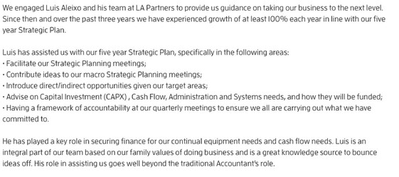 Client Testimonial highlighting how important the Business Strategical Plan was in assisting their business (Business in the Building & Construction Industry)