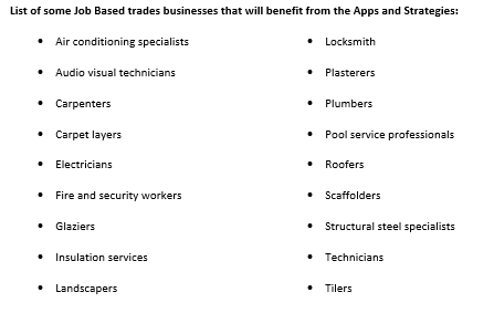 PS: A separate article will be published for "Project Type" Trade Businesses (eg Builders, Shop Fitters etc).